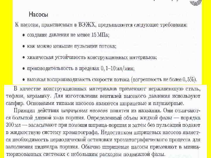 С этого и началась современная высокоэффективная жидкостная хроматография (ВЭЖХ). Разделять вещества на коротких колонках оказалось невозможно. А разделение на длинных требовало слишком много времени. Выход был — надо было уменьшить толщину теоретической тарелки за счет повышения ее эффективности, то есть за счет увеличения поверхности неподвижной фазы, следовательно — за счет повышения степени ее измельчения. Однако колонка, набитая очень мелкой (3 -10 мкм) неподвижной фазой, жидкость не пропускала. А при попытке увеличения давления стеклянные колонки лопались. И так было до тех пор, пока не стали использовать колонки из нержавеющей стали. Так появился жидкостной хроматограф, который вы видите на следующем слайде.