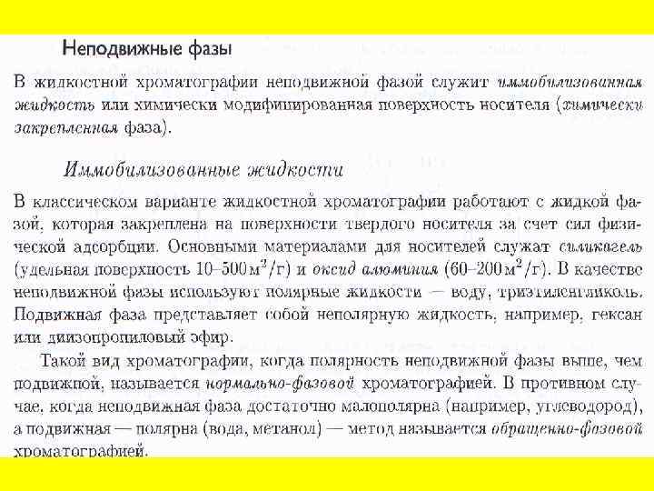 Хроматография газовая. ГЖХ и ВЭЖХ История открытия. Колоночная хроматография. Цвет Явления на границе раздела фаз. Адсорбция, изотермы адсорбции. Динамика адсорбционных процессов. Упрощенная модель распределительной хроматографии Жидкостная хроматография. Эффективность. Сопротивление неподвижной фазы. Аппаратурное оформление — хроматограф. ВЭЖХ. Детекторы Ионная хроматография. Детектор. Газовая хроматография. Хроматограф, блок-схема. Абсорбция, ГЖХ. Детекторы. Примеры применения.