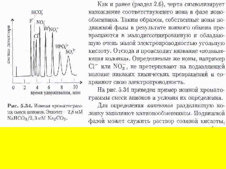 А подавляющую колонку заполняют анионообменником в ОНформе. Реакция элюента в подавляющей колонке в этом случае проходит по уравнению Однако емкость ионообменника в этом случае быстро исчерпывается и его приходится регенерировать