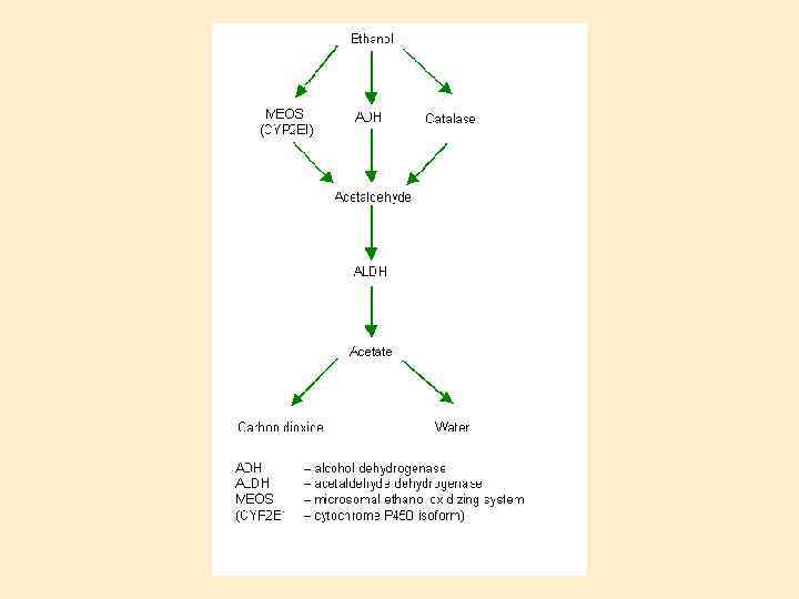 Алкогольное заболевание печени. Патогенез. Алкоголь обладает прямым гепатотоксичным действием (ацетальдегид) ХГ и ЦП развиваются только у 10 -20% алкоголиков, что указывает на влияние других факторов: генетическую предрасположенность (снижение активности ферментной системы защиты), пол (женщины-алкоголики болеют чаще), нарушения метаболизма, вызванные белкововитаминной недостаточностью и низким калоражем суточного рациона (вследствие анорексии и нарушенного всасывания), снижение иммунореактивности и предрасположенность к инфицированию вирусами гепатита В и, особенно, С.