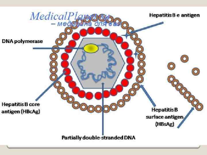 Маркеры вируса В в репликативную и интегративную фазы развития HBVинфекции Маркеры HBV 1. Сывороточные: HBs. Ag HBe. Ag HBV ДНК Anti-HBc Ig. M Anti-HBc Ig. G Anti-HBe 2. Тканевые: HBe. Ag HBs. Ag HBV ДНК Фаза развития HBV-инфекции репликации интеграции + + + + -