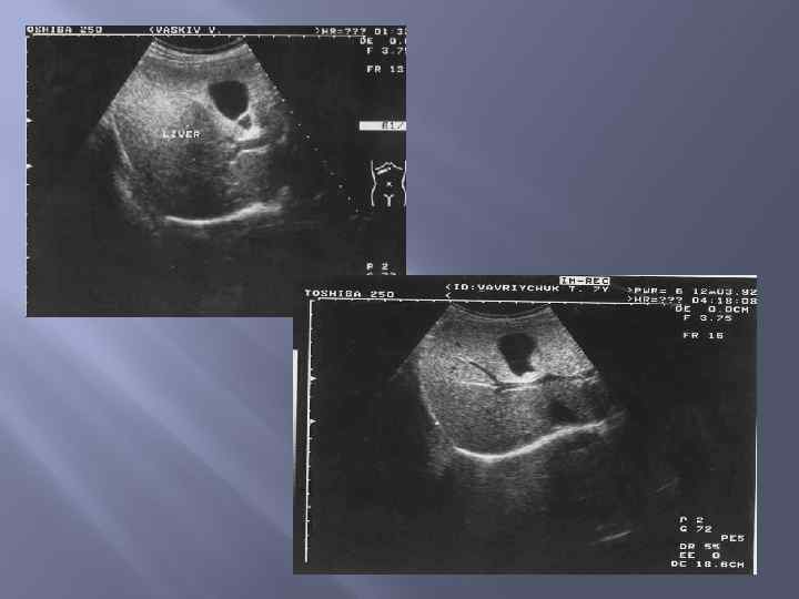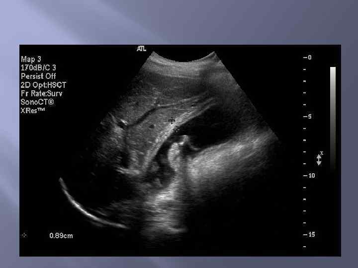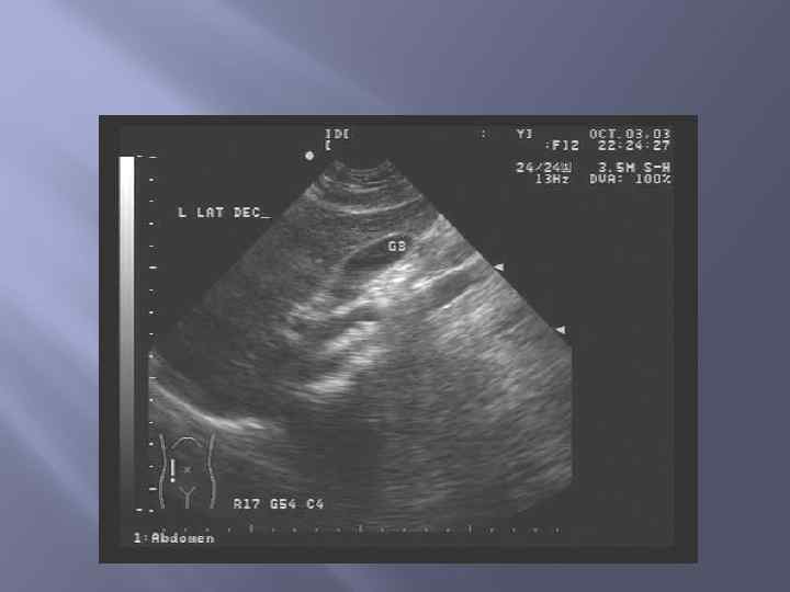 болезненность при пальпации в правом подреберье, пузырные симптомы слабоположительные, печень редко увеличена в размерах; диспепсический синдром - склонность к поносам; ультразвуковое исследование: уменьшение в размерах желчного пузыря, в первую очередь его поперечника, после употребления стимулирующего завтрака больше чем на 50 %.