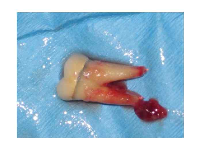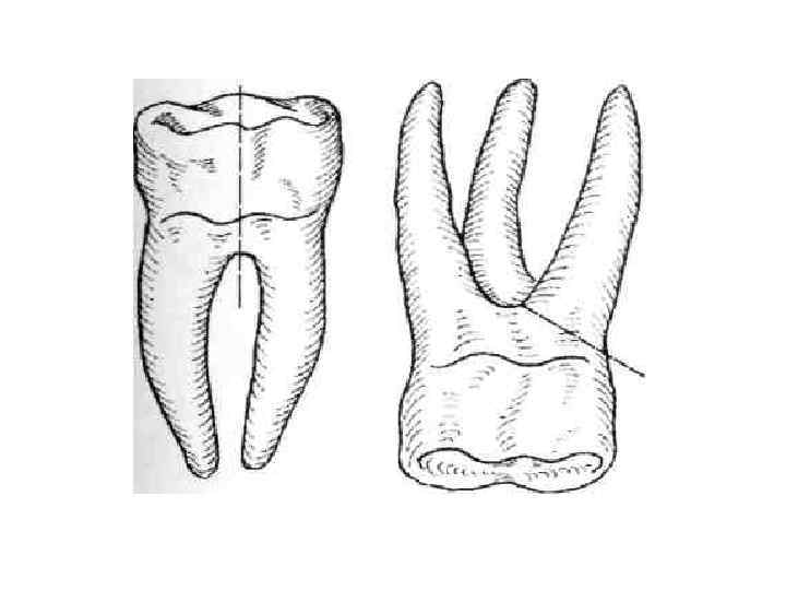 Коронарорадикулярная сепарация • проводят в области больших коренных зубов при патологическом очаге в области бифуркации или трифуркации корней. Зуб рассекают на две части, проводят некрэктомию. Каждый сегмент зуба покрывают спаянными коронками, восстанавливая его функцию