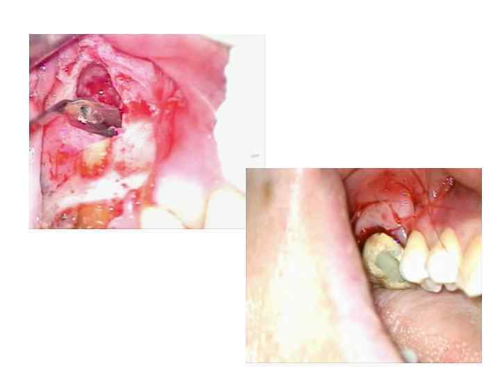 Различают 3 типа одонтогенной гранулемы: поднадкостничную, подслизистую и подкожную • При поднадкостничной гранулеме наблюдают выбухание кости альвеолярного отростка, округлой формы, соответственно пораженному зубу. Слизистая оболочка над этим участком чаще не изменена, иногда могут быть небольшие воспалительные явления, которые нарастают при обострении воспалительного процесса.