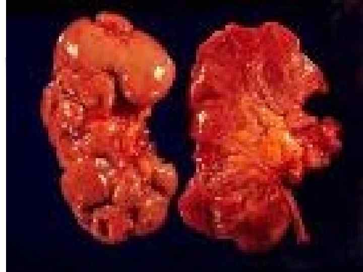 Морфологические изменения n n Атрофия и дистрофия канальцев, крупно- и мелкоочаговый склероз интерстиция мозгового и коркового слоев, лейко-лимфогистиоцитарная инфильтрация, отек интерстиция На терминальной стадии – появление ишемически сморщенных клубочков. В макропрепарате – деформация чашечнолоханочной системы почки
