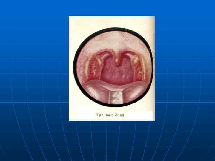 Объективные симптомы ХТ: n n n Увеличение и болезненность ригионарных лимфатических узлов под углом нижней челюсти по переднему краю грудинно-ключично-сосцевидной мышцы. Величина НМ роли не играет. Бугристость. Спайки с небными душками. Широкие лакуны, гнойные пробки в них. Симптомы Гизе, Зака, Б. С. Преображенского