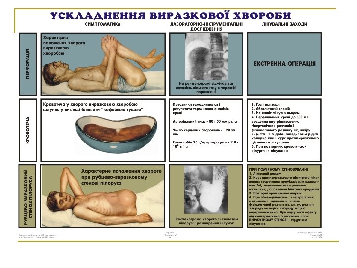 Класифікація виразкової хвороби n n n n n Стадії: I – неускладнена виразкова хвороба, вперше виявлена (гостра чи хронічна без рубцевої деформації) і неускладнена виразкова хвороба з легким перебігом; II – неускладнена виразкова хвороба з частими рецидивами (щорічно); III – ускладнена виразкова хвороба; IV – рецидив виразкової хвороби після оперативного лікування. За наявністю пілоричного хелікобактеріозу: НР-позитивна; НР-негативна. За локалізацією: виразка шлунка; виразка дванадцятипалої кишки; виразка шлунка і дванадцятипалої кишки (поєднані); виразки анастомозу; неуточненої локалізації. За розміром виразкового дефекту: мала виразка; середніх розмірів ( у шлунку – 1 -2 см, у дванадцятипалій кишці – 0, 3 -0, 5 см); велика (в шлунку – 2 -4 см, у дванадцятипалій кишці – 0, 6 -1, 0 см); гігантська (в шлунку – 5 см і більше).
