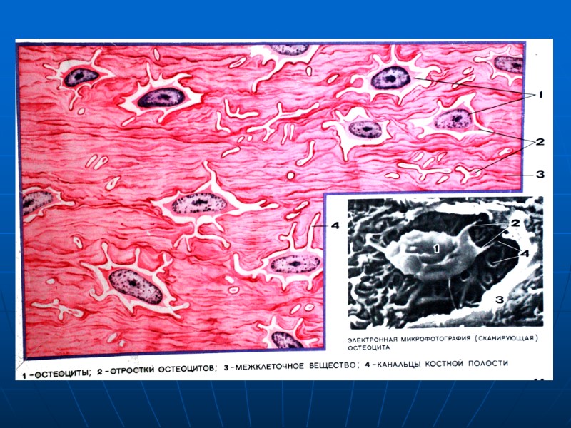 КОСТНЫЕ ТКАНИ функции: опорно-механическая, участие в минеральном обмене. 2) разновидности и их локализация - грубоволокнистая (встречается в черепных швах и местах прикрепления сухожилий к костям) - пластинчатая (образует компактное и губчатое вещество трубчатых и плоских костей). 3) Общая морфологическая характеристика - твердая консистенция - межклеточное вещество — составляет сеть из коллагеновых волокон, в качестве “наполнителя” выступают кристаллы фосфорнокислого кальция. - клеточный состав: остеобласты (молодые клетки; выполняют роль строителей), остеоциты (зрелые), остеокласты (клетки-разрушители).