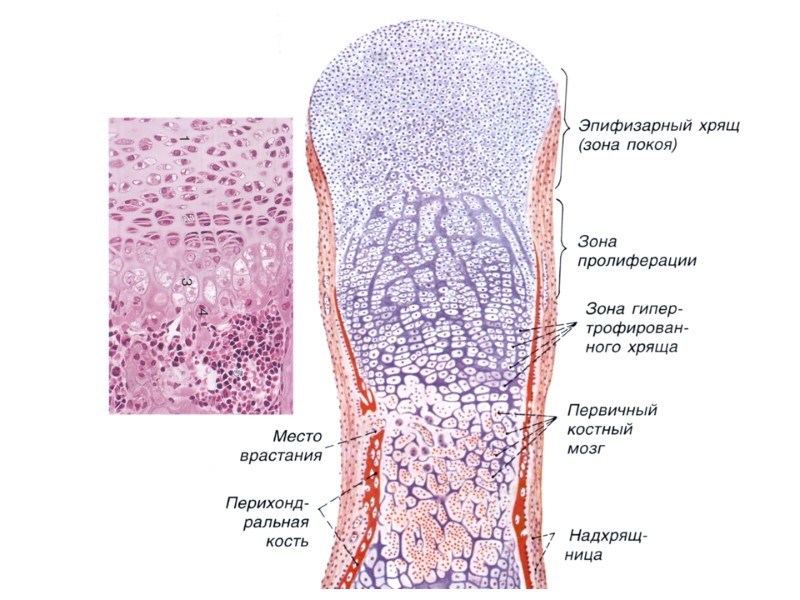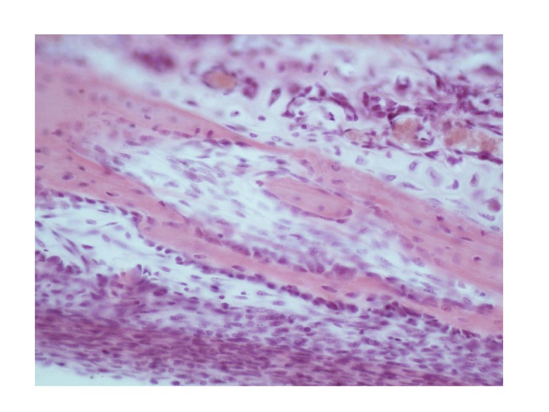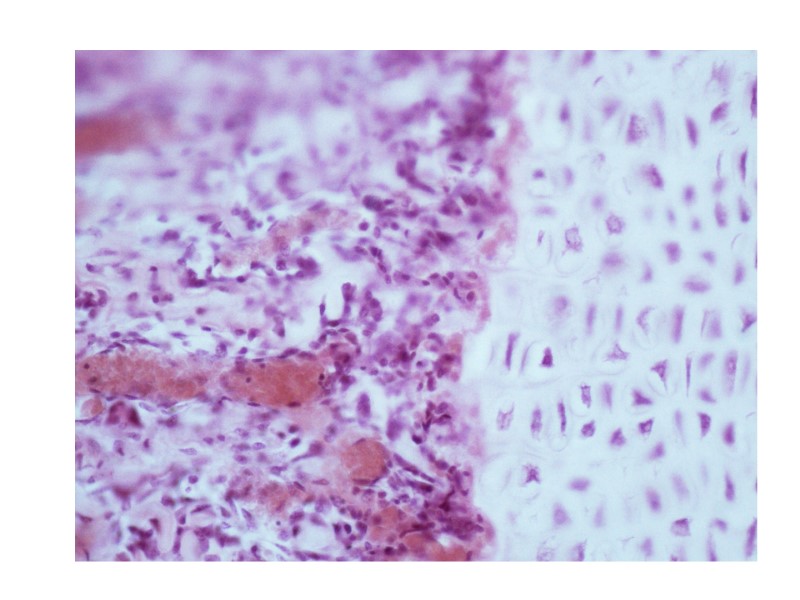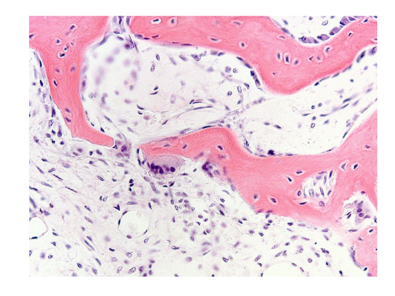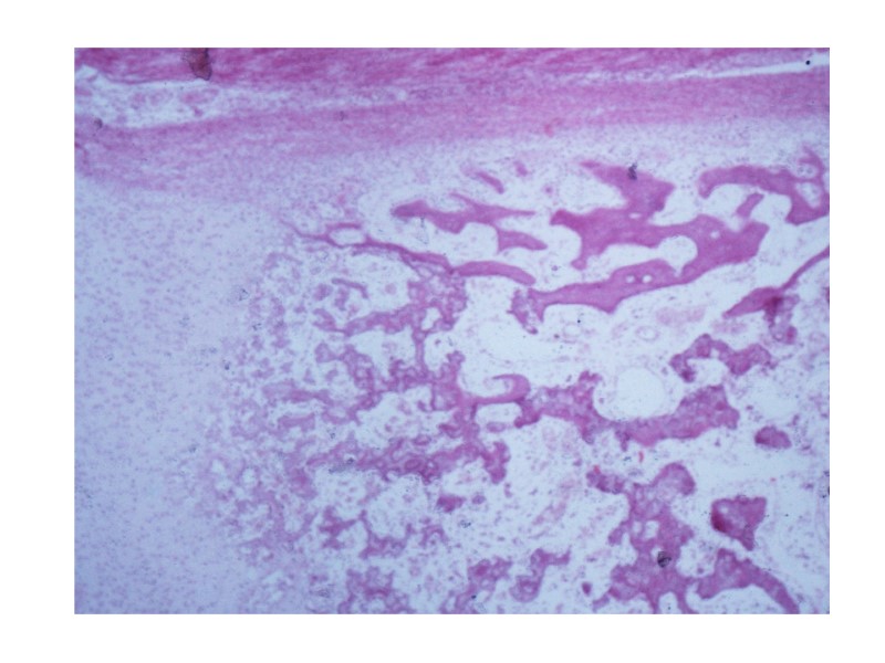Препарат №69 «Развитие костной ткани на месте хряща. Непрямой остеогенез». Окраска гематоксилин-эозин