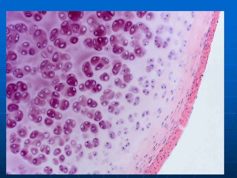 РАЗНОВИДНОСТИ ХРЯЩЕЙ И ИХ ХАРАКТЕРИСТИКА ГИАЛИНОВЫЙ ВОЛОКНА КОЛЛАГЕНОВЫЕ II и X ТИПОВ ВЫСОКОЕ СОДЕРЖАНИЕ СУЛЬФАТИРОВАННЫХ ГЛЮКОЗАМИНОГЛИКАНОВ КЛЕТКИ ФОРМИРУЮТ ИЗОГЕННЫЕ ГРУППЫ С ВОЗРАСТОМ ХРЯЩ ОБЫЗВЕСТВЛЯЕТСЯ