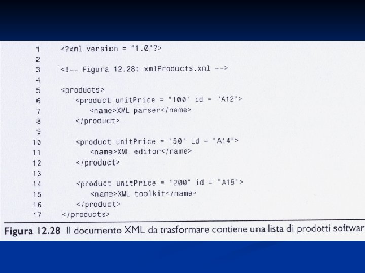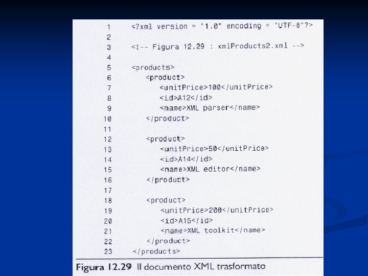 Esercizio 1 n Scrivere un XSLT che trasformi il documento della figura 12. 28 in quello della figura 12. 29 seguenti