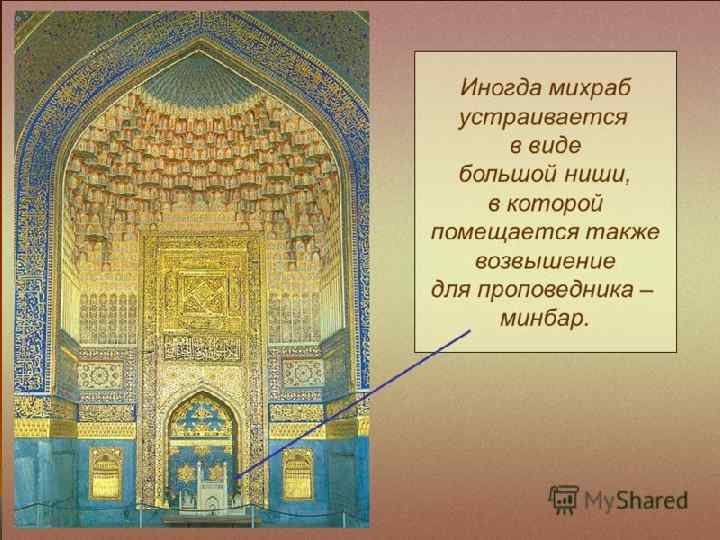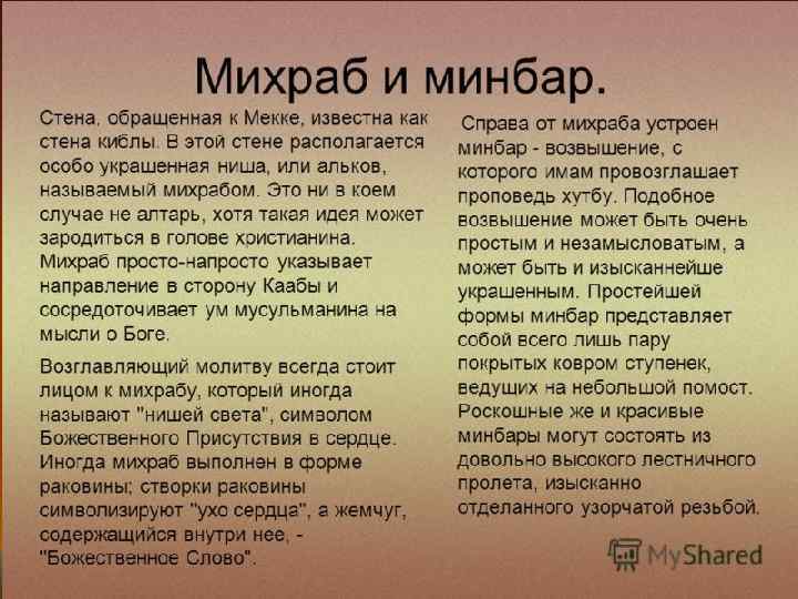 Хадж – паломничество. Михраб – алтарная ниша обращена в сторону Мекки (священный город мусульман) Арки
