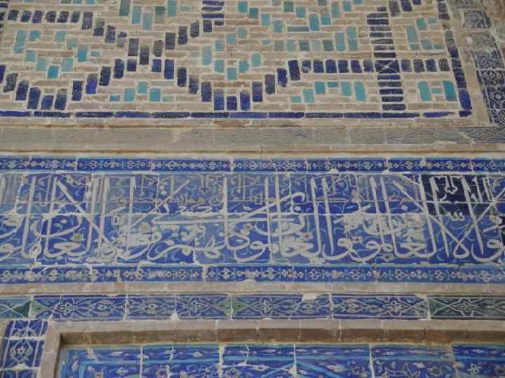 Внутри мечети нет никаких изображений – только изречения из Корана и Минбар – кафедра проповедника