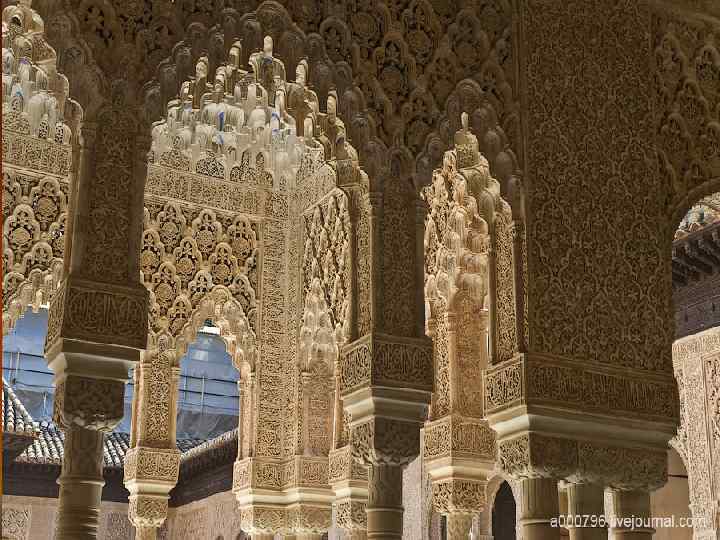 Альгамбра – самый известный памятник мавританского искусства в Испании – была построена во времена правления династии Насридов. Дворец строили из дерева, керамической плитки и штукатурки. Каждый правитель вносил какие-то изменения в этот комплекс зданий и двориков.