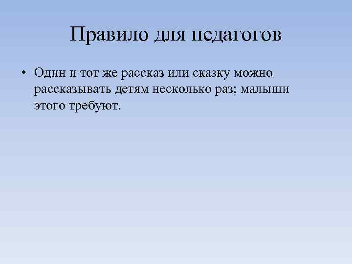 Правило для педагогов • Один и тот же рассказ или сказку можно рассказывать детям несколько раз; малыши этого требуют.