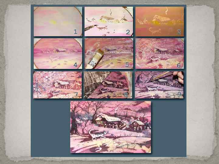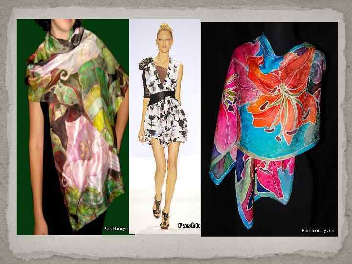 Заключение Роспись по ткани является одним из древнейших методов её украшения. И до наших дней этот вид искусства не устарел и не потерял актуальности. Сказочные цветы и нежные пейзажи, изображенные на тончайшей ткани, выглядят столь ослепительно, что едва ли человеку захочется отказаться от возможности созерцать эту красоту.
