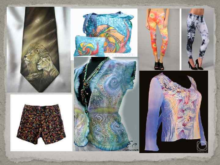 Красители Для различных тканей используются различные красители, хотя существуют универсальные красители, но они не всегда полностью соответствуют своему названию. Существуют так же фломастеры, предназначенные специально для тканей. Рисунок, нанесенный с их помощью, закрепляют, проглаживают утюгом.
