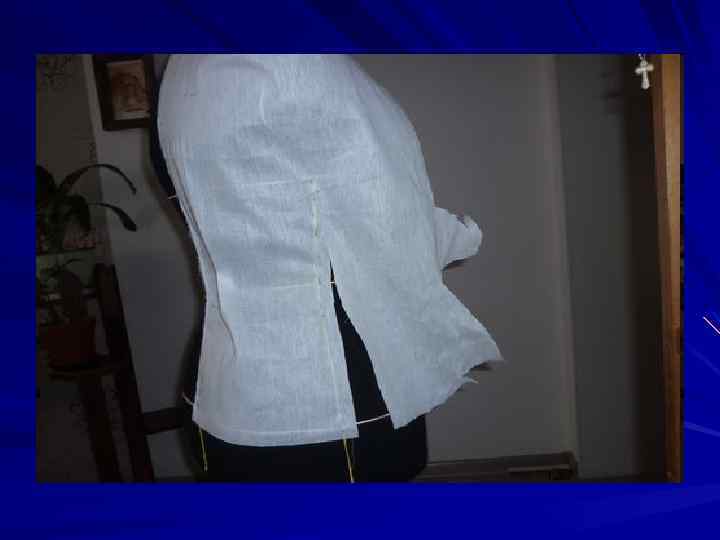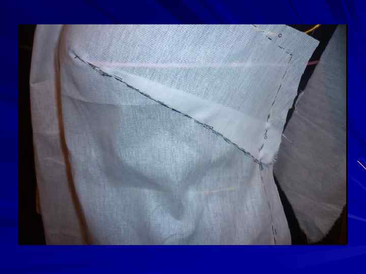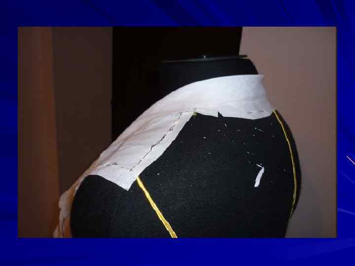Продолжаем выглаживать правый боковой срез и оформляем правую пройму , срезая лишнюю ткань, оформляем линию горловины и плечевых срезов