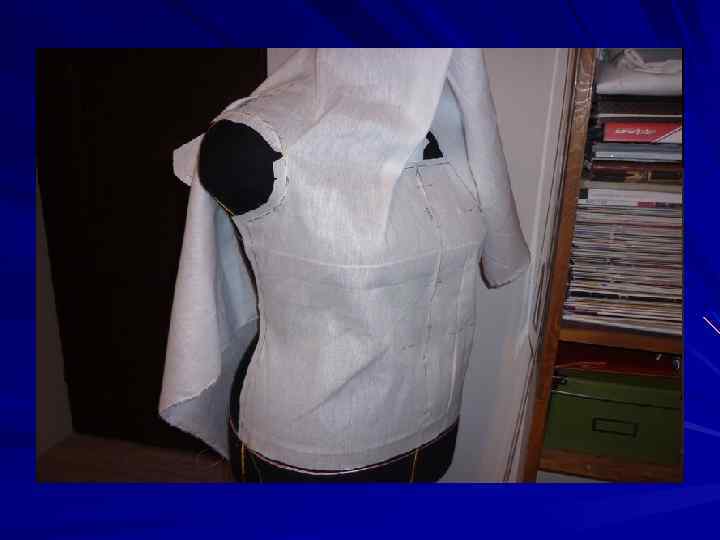 Создание блузки методом наколки На манекен с помощью сутажной тесьмы наносим линии : горловины, груди, талии, бедер, а также линии проймы, центра переда , спинки и боковых швов. затем наносим фасонные линии