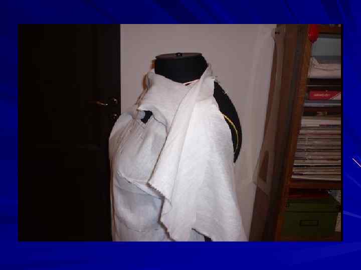 Излишек ткани, оставшийся после выглаживания правой полочки, используем для моделирования воротника банта