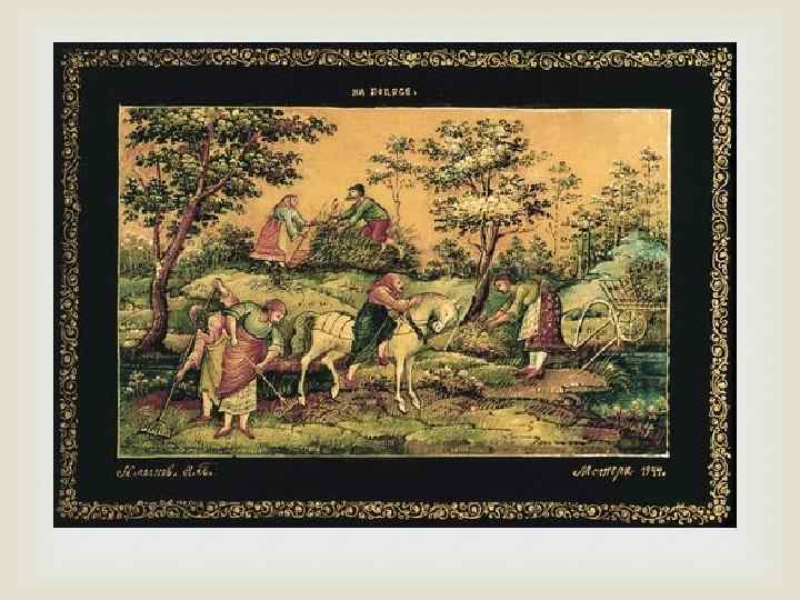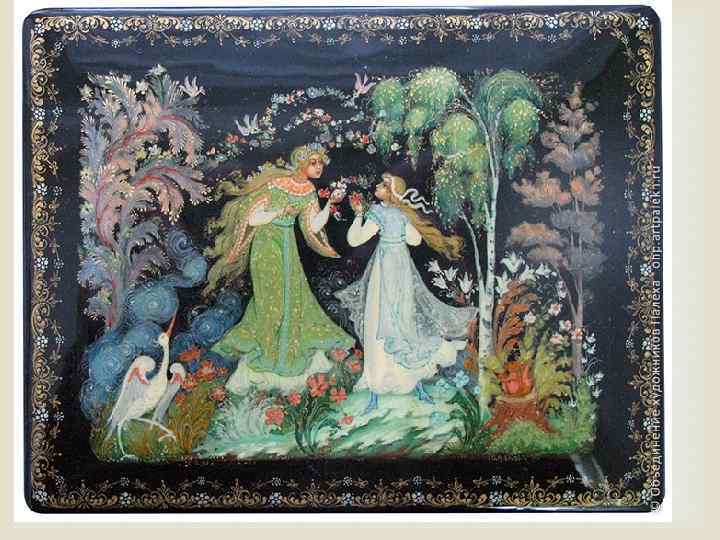 миниатюры Мстёрские мастера лаковой избирательно подходили к росписи и художественному оформлению. Таким образом, на тончайших нюансах изменений и перестройки внутри системы местного искусства происходит, с одной стороны, развитие традиций, а с другой – формирование авторских манер миниатюристов в недрах общего стиля искусства промысла. На таком неразрывном единстве основывается глубоко народный характер мстёрской миниатюры.