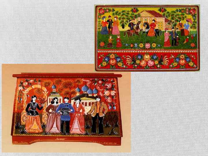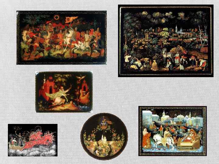 ПАЛЕХСКАЯ МИНИАТЮРА Палехская миниатюра — народный промысел, развившийся в поселке Палех Ивановской области. Лаковая миниатюра исполняется темперой на папье-маше. Обычно расписываются шкатулки, ларцы, кубышки, брошки, панно, и т. д.