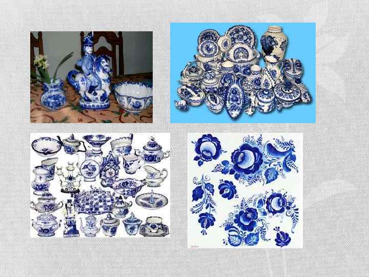ГЖЕЛЬ Гжель — один из традиционных российских центров производства керамики. Более широкое значение названия «Гжель» , являющееся правильным с исторической и культурной точки зрения, — это обширный район, состоящий из 27 деревень, объединённых в «Гжельский куст» расположен примерно в шестидесяти километрах от Москвы.