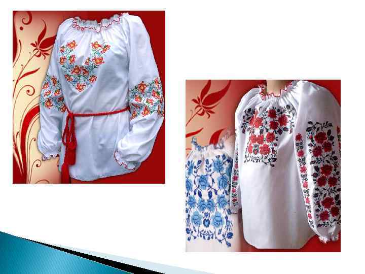 Вишивка — найпоширеніший вид народного декоративно-прикладного мистецтва, орнаментальне або сюжетне зображення на тканинах, шкірі, виконане різними ручними або машинними швами. Дивовижне багатство художньо-емоційних рішень української народної вишивки зумовлене різнотипністю матеріалів, технік виконання орнаментів, композицій, колориту, які мають численні локальні особливості. Художнє обдарування українського народу, вершини його мистецького хисту в повну силу виявлені у вишитих творах. Немає меж розмаїттю їхніх художньовиражальних засобів.