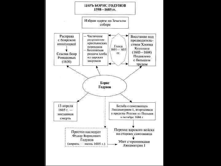 ПРАВИТЕЛИ ГОСУДАРСТВА Борис Годунов Избран на царство Земским Собором в году Скончался в 1605 году 1598