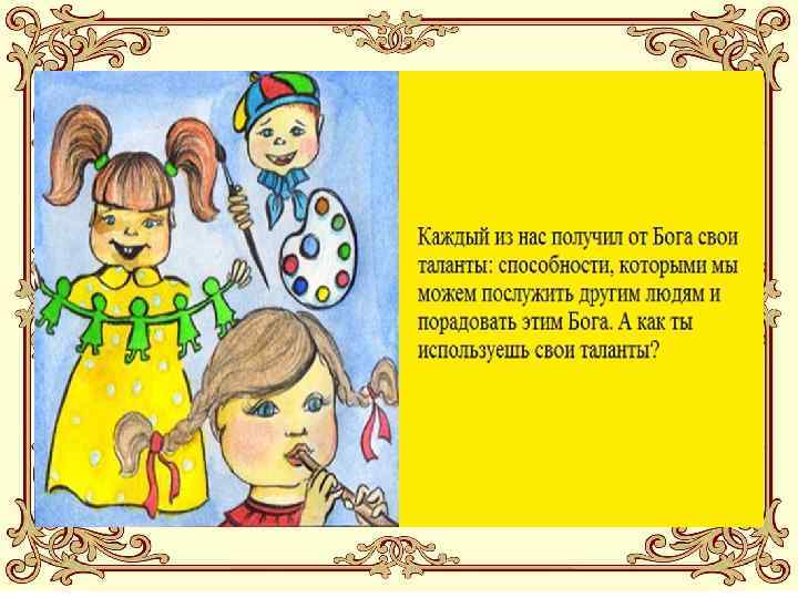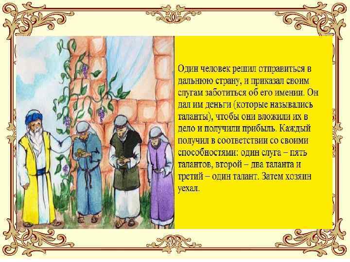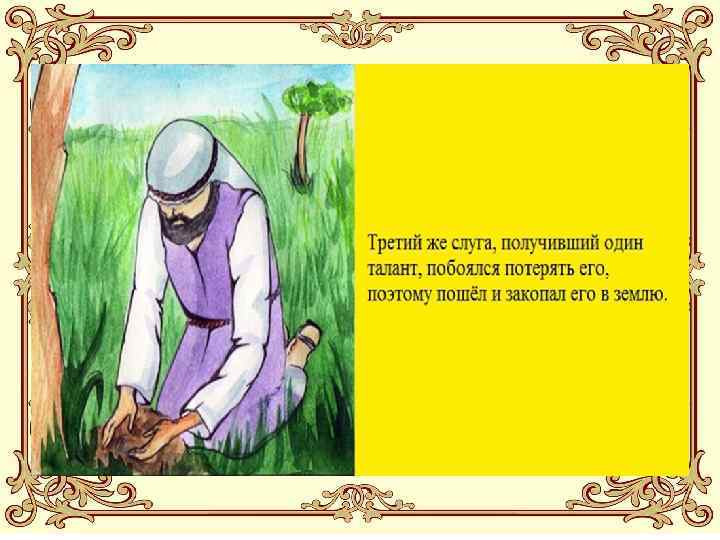 Крылатое выражение: «Зарывать свой талант в землю» Что это значит? Важно не то, что человек имеет: (таланты, знания, навыки, ресурсы), а то, как он это использует. Можно обладать огромными возможностями, но никак их не применять, и тогда они пропадут