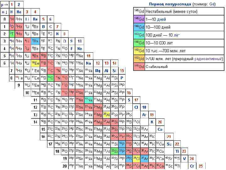 Период полураспада Т 1/2 некоторых радиоактивных изотопов