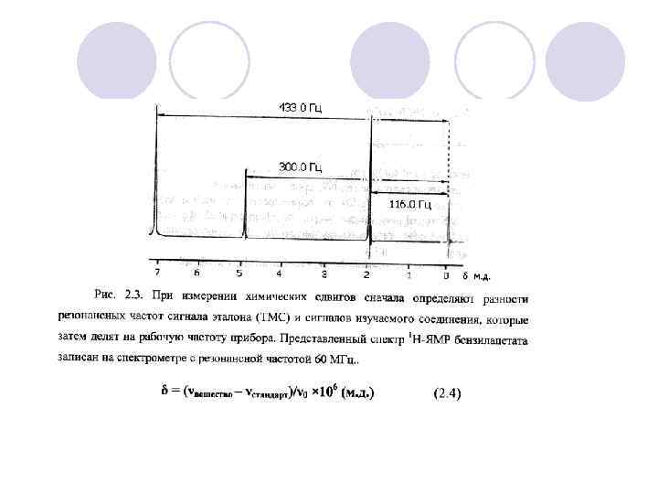 Основные характеристики спектров ЯМР : l химический сдвиг, l мультиплетность, l константа спинового взаимодействия; l площадь сигнала резонанса. l Стандарт тетраметилсилан (ТМС) Si(CH 3)4 l Химический сдвиг l Разность положения сигнала данного протона и положение сигнала стандарта называется химическим сдвигом данного протона. l В практике ЯМР-анализа химический сдвиг выражают в миллионных долях (м. д. ) и обозначают символом «δ» . Химические сдвиги не зависят от рабочей частоты спектрометра: l δ = Δν∙ 10 6 / рабочая частота прибора, (Гц)