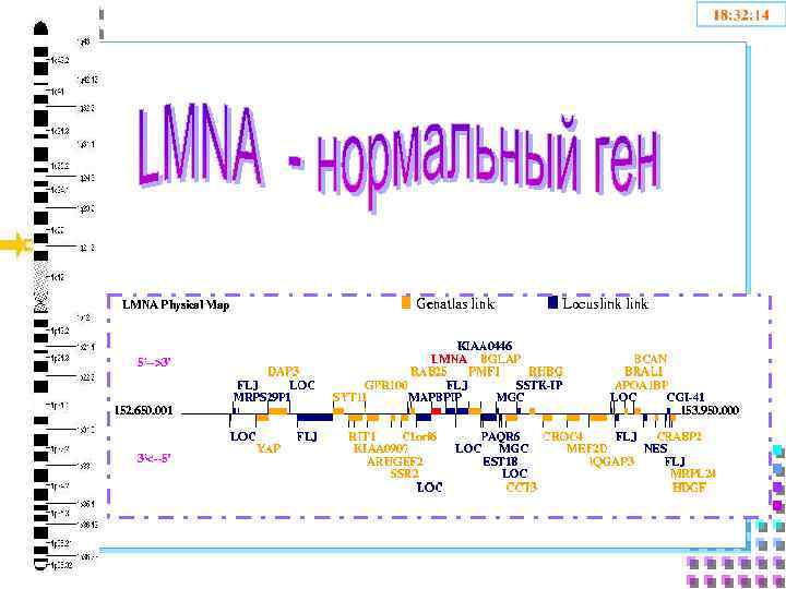 ØНа молекулярном уровне – синтез белка Lamin A Øна клеточном уровне – организация ядерной ламины ØНа уровне организма –участие в контроле процессов старения