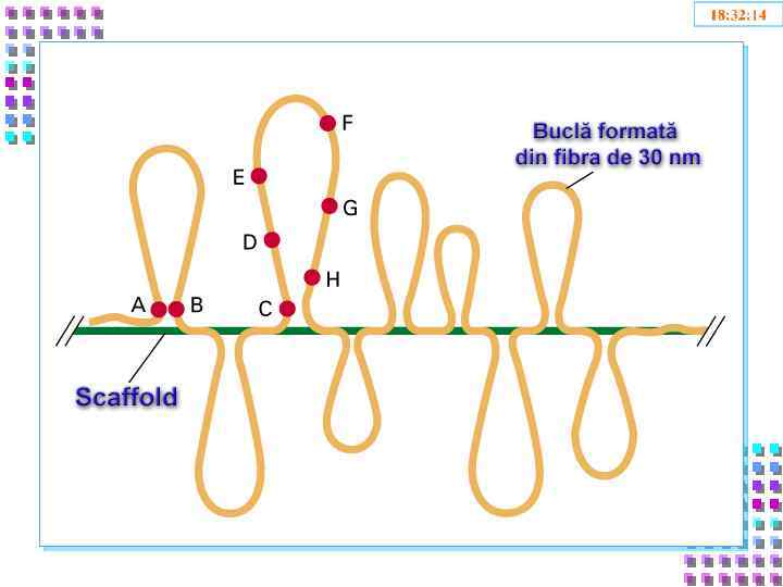 III уровень- петли • Петли большие и малые, диффузные или компактные, толщина – 300 nm; • Степень конденсации – x 600 -1000; • Механизм образования: • Прикрепление нити хроматина 30 nm к белковой оси – scaffold; • Взаимодействие SAR – scaffold • Транскрипция генов – заблокированна