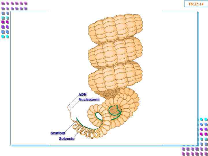 II уровень – соленоид • • • Нить хроматина 30 nm; Степень конденсации – x 40 раз; Механизм образования: • Фосфорилирование H 1 сверхспирализация полинуклеосомной нити – по 6 нуклеосом в витке; • Блокирование транскрипции ДНК.