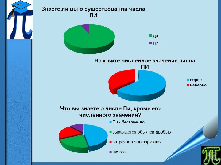 Анкетирование v. Знаете ли вы о существовании числа ? v. Назовите численное значение числа . v. Что вы знаете о числе , кроме его численного значения?