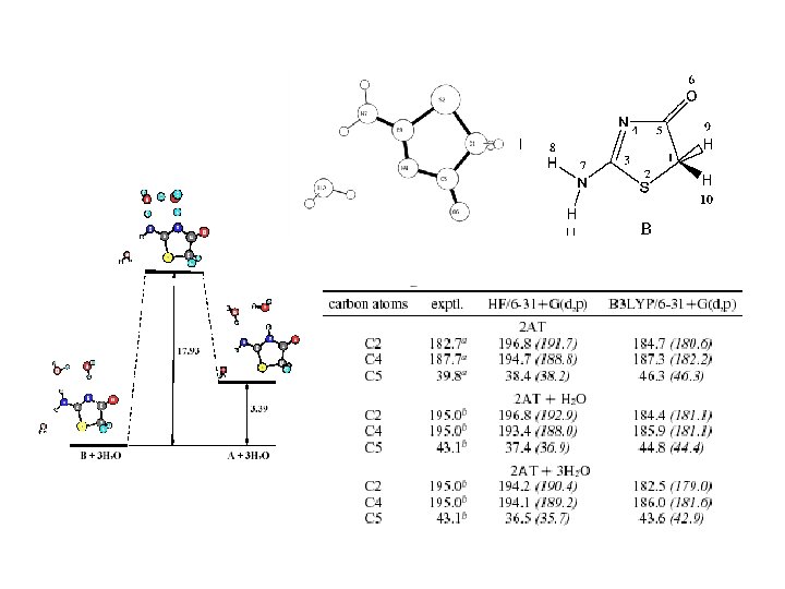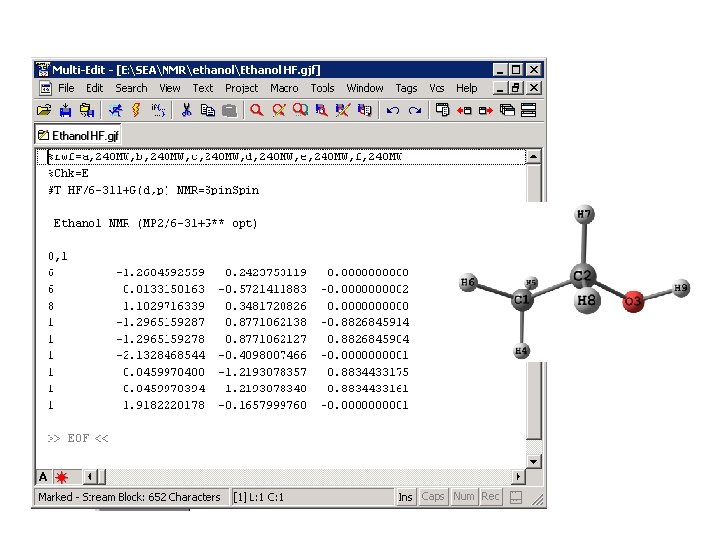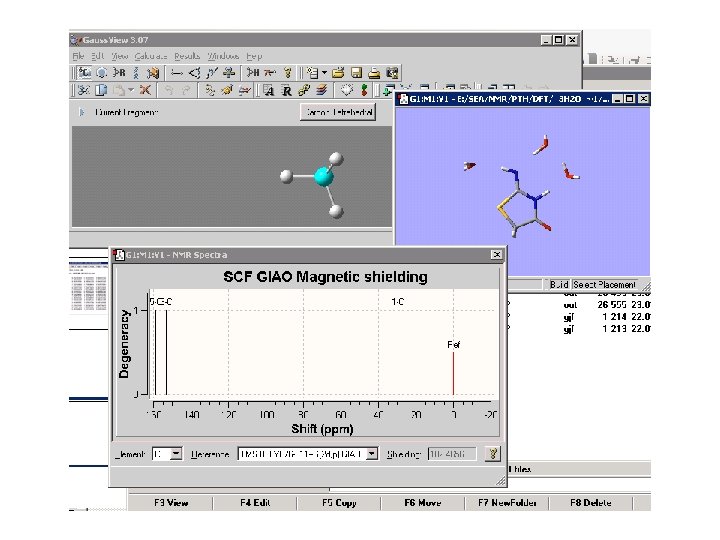 • GIAO химичните екрания и константи на спин-спиново взаимодействие се изчисляват след оптимизация на геометрията на определено ниво. • За да се сравняват с експеримента, изчислените химични екрания се трансформират в химични отмествания чрез използване на съответно съединение стандарт: ØTMС за въглеродни и водородни атоми ØH 2 O за кислородни атоми Ø CCl 3 F за флуорни атоми ØCS 2 за серни атоми ØSe(CH 3)2 за атомите на селена δ = δcalc(reference) – δcalc като δcalc(reference) и δcalc се изчисляват с едни и същи метод и базисен набор.