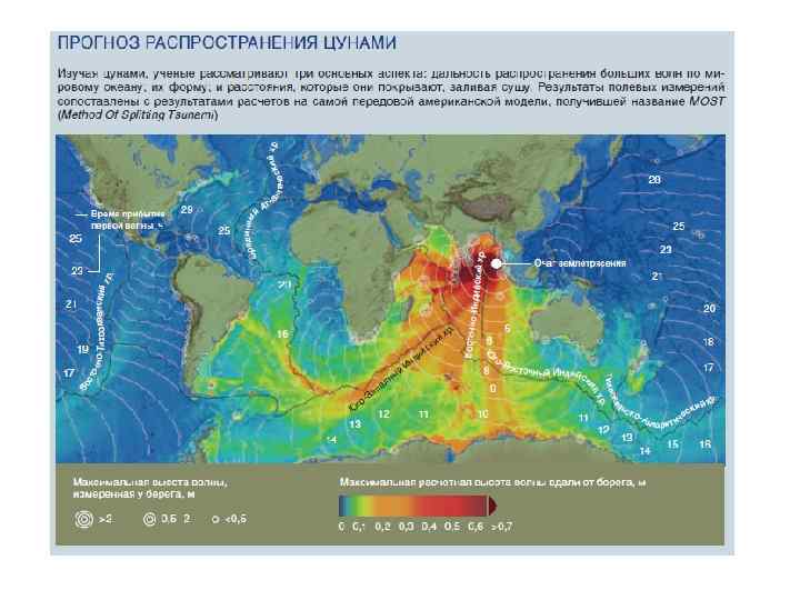 Скорость распространения цунами в океане составляет 700 -800 км/ч, а на побережье уже снижается до 30 -40 км/ч