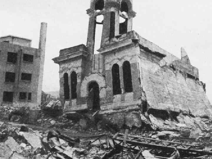 Япония во второй половине XX века Aтомная бомба была впервые испытана в Нью-Мексико в июле 1945 года; позже Оппенгеймер вспоминал, что в тот момент ему пришли в голову слова из Бхагавад-гиты: «Если сияние тысячи солнц вспыхнуло бы в небе, это было бы подобно блеску Всемогущего… Я — Смерть, Разрушитель Миров» Место испытаний Тринити Роберт Оппенгеймер, отец атомной бомбы (1904 -1967)