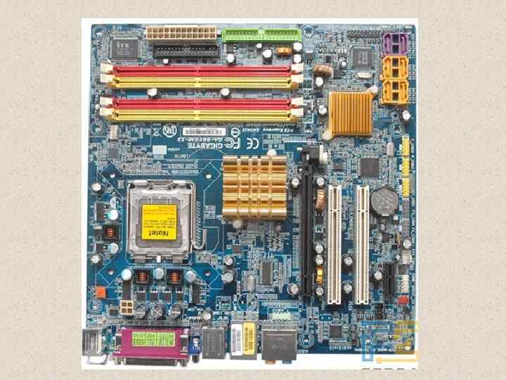 Ø Разъем для установки процессора Ø Разъемы- «слоты» стандарта PCI и PCI-Express (двух типов: короткие PCI-Express x 1 и длинные PCI-Express x 16) – для подключения дополнительных плат ØСлоты для установки оперативной памяти Ø Разъемы для подключения накопителей: IDE ( Imbedded Drive Electronics); Serial. ATA (SATA); SCSI (Small Computer Systems Interface); Floppy. Ø Разъемы питания На материнской плате также имеются контроллеры (портов вводавывода, Fire. Wire, сетевой и пр. ), дополнительные контактные группы для подключения портов USB и IEEE 1394 (Fire. Wire), порта S/PDIF, а также звуковой кодек и другие элементы.