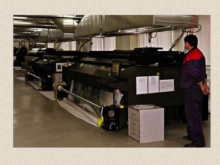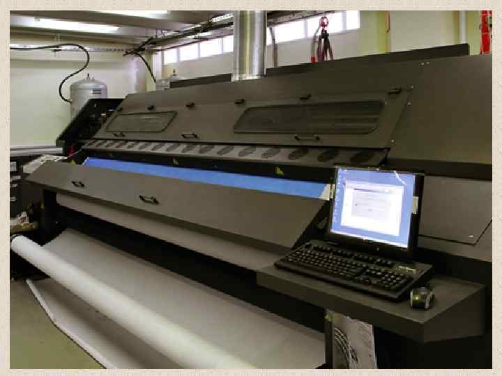 История широкоформатной печати началась в 1989 году, когда компания VUTEk выпустила первое в мире принтер с шириной печати около 2, 5 метров, который работал по принципу распыления краски под управлением компьютера. В настоящее время выпускаются широкоформатные принтеры от 1, 5 до 5 метров, предназначенных для различных типов материалов. Модели таких принтеров оснащены системой для печати на тканевых материалах сублимационными сольвентными чернилами. Они используются для запечатывания баннерной ПВХ-ткани, баннерной сетки и самоклеящейся виниловой пленки, позволяют получать сегменты постеров форматом 6 х 3 м на бумаге blueback. Некоторые модели широкоформатных принтеров могут использоваться для нанесения полноцветной высококачественной графики на ковролин, стекло, натяжные и подвесные потолки, столешницу и древесину и др.