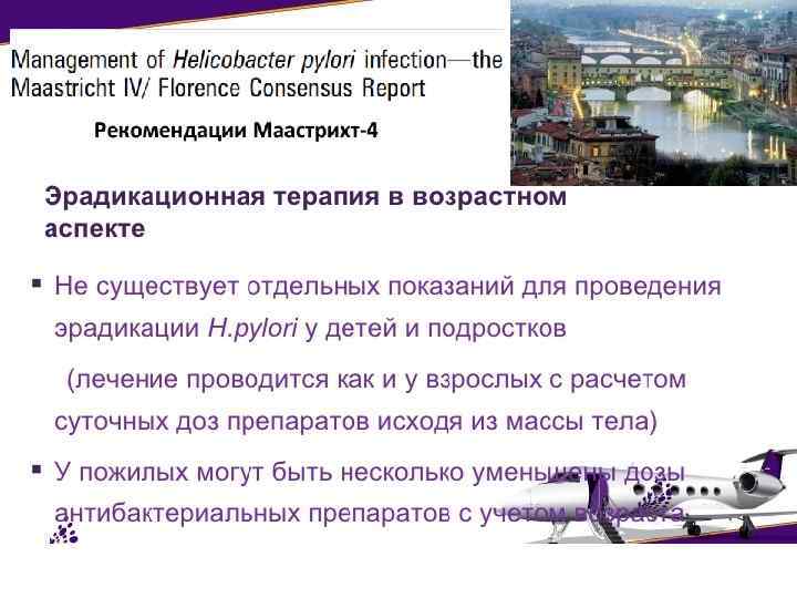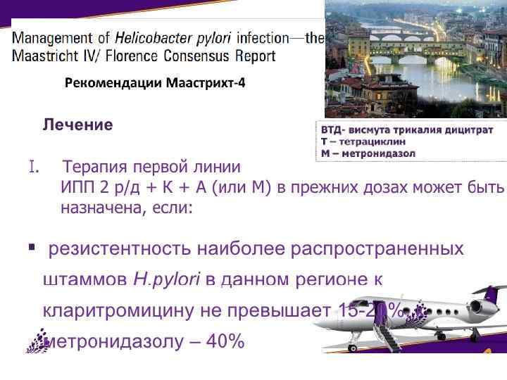 Показания для повторной эрадикации H. pylori В повторном курсе эрадикационной терапии нуждаются больные у которых: • Сохранилась инфицированность гастродуоденальной слизистой оболочки НР • Возникли осложнения (язвенное кровотечение, прободение, выраженная рубцовая деформация пораженного органа с расстройством эвакуации) • Имеют место сопутствующие заболевания, по поводу которых больной вынужден принимать лекарства с ульцерогенным действием (НПВС, ГКС и и др. )