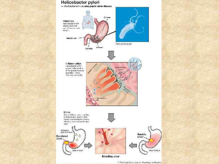 Этиология • • • Helicobacter Pylori Наследственная предрасположенность Курение Лекарственные препараты( глюкокортикоиды, НПВС) Злоупотребление алкоголем Нерациональное питание (острая, солёная, грубая пища) Нарушение эвакуации пищи из желудка Сниженный иммунитет Нервное и физическое перенапряжение, частые стрессы Метеорологические воздействия (сезонность) Недостаточное количество витаминов в организме