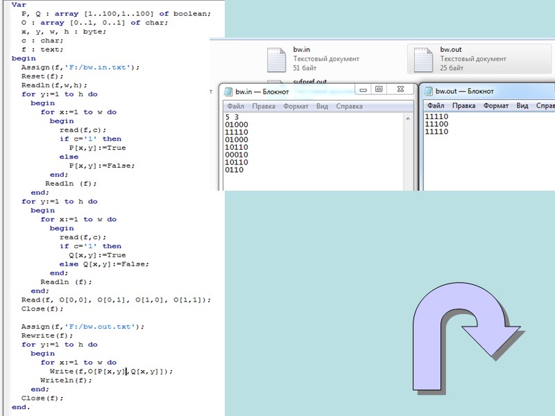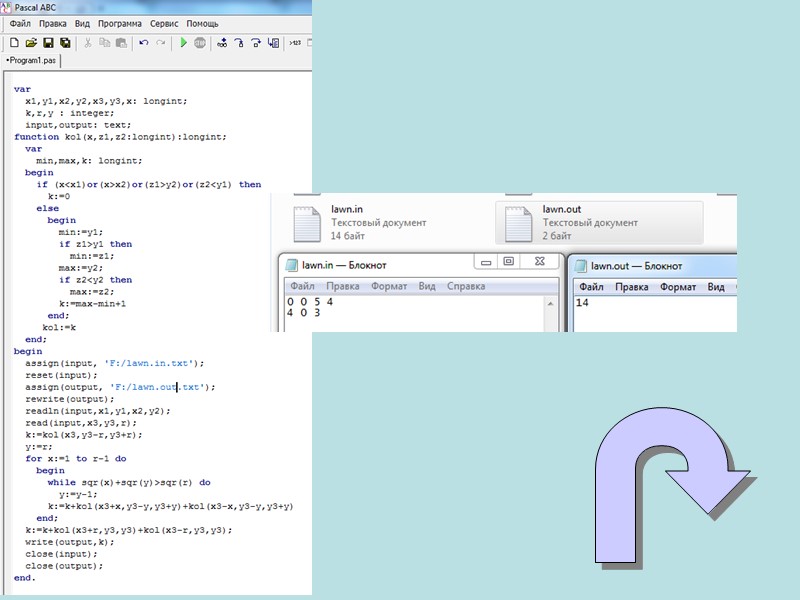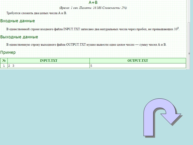 Решение олимпиадных задач. Язык программирования Pascal Сумма чисел Условие Решение Пассажиры Условие Решение Наибольшее отношение. Условие Решение Ёжик Условие Решение Чёрно – белая графика Условие Решение Газон Условие Решение Abracadabra Условие Решение Курьеры Условие Решение Треугольник Условие Решение Поездка на дачу Условие Решение Шахматы Условие Решение Турнир четырёх Условие Решение Массив. Поменять местами наибольший и наименьший элементы массива Решение Массив. Поменять местами соседние элементы на четных и нечётных местах Решение
