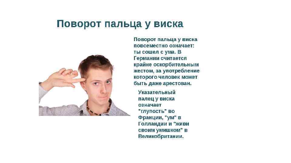 • Подзывающие знаки указательным пальцем в Азии воспринимаются как неприличные жесты • В разных странах они истолковываются в качестве просьбы подойти (приблизиться)