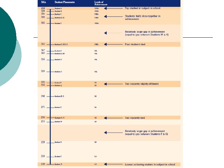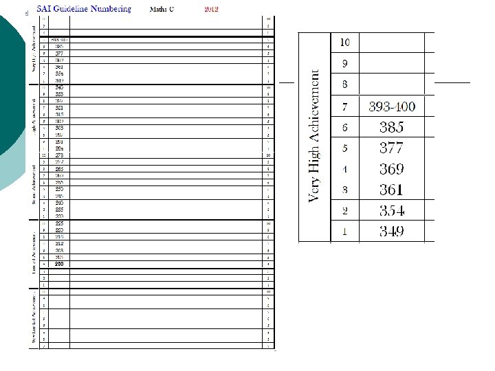 Subject Achievement Indicators (SAI) Each student will have an SAI for each Authority subject ¡ The school’s ranking of students for each subject (1) in order (2) with correct relative gaps SAI’s are published and students are encouraged to check these ¡