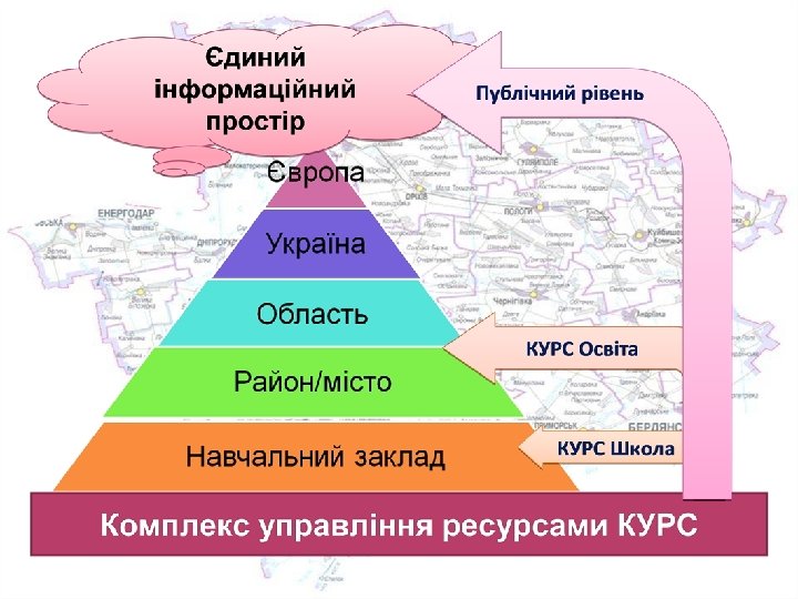 Інфраструктура • Нормативно-правова база (концепції, положення, посадові інструкції, дозвіли тощо) • Програмне забезпечення (платформа, середовище) • Технічне забезпечення (сервер, локальні і корпоративні мережі, підключення до швидкісного Інтернету) • Кадрове забезпечення (системний адміністратор, техніки, експерти освітнього контенту) • Організаційна структура (районні центри інформатизації)
