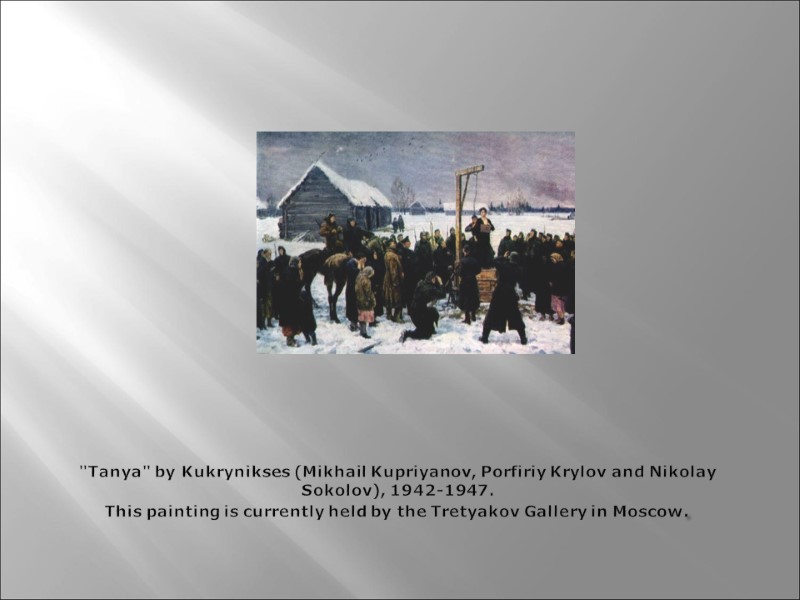 "Tanya" by Kukrynikses (Mikhail Kupriyanov, Porfiriy Krylov and Nikolay Sokolov), 1942-1947. This painting is currently held by the Tretyakov Gallery in Moscow.