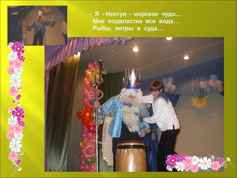 - Я - Нептун – морское чудо… Мне подвластна вся вода… Рыбы, ветры и суда…