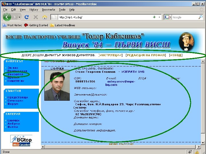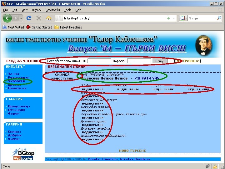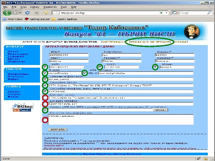 ЗА САЙТА НА ВИПУСКА http: //vip 1. vtu. bg/ Достъпът до указателя на сайта е направен на две нива: o публичен достъп – персоналната информация се вижда от всеки посетител, ако сме избрали това o за членове – персоналните данни се виждат след като се влезе с ЕГН (потребителско име) и парола